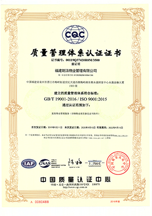 质量管理体系认证证书