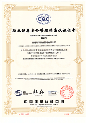 职业健康安全管理体系认证证书