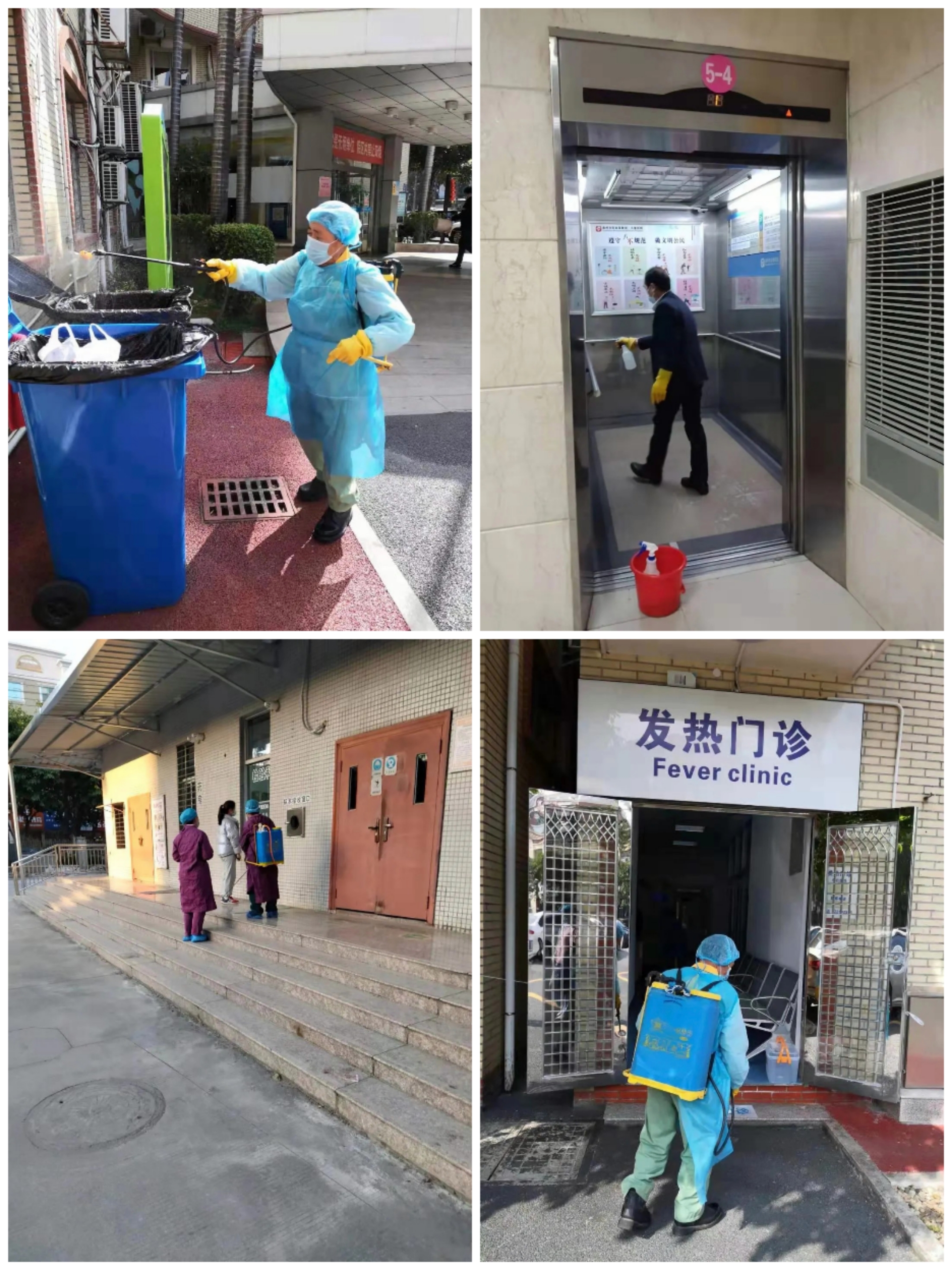 各医院物业项目部加大消杀力度,针对外围、电梯、垃圾桶等公共区域进行全方位的清洁消杀,增加消毒和清洗频次和力度,及时做到有效杀菌消毒。在此基础上,每天不定时对消杀情况进行突击检查,及时纠偏定向,在保障医院环境安全方面持续发挥作用。
