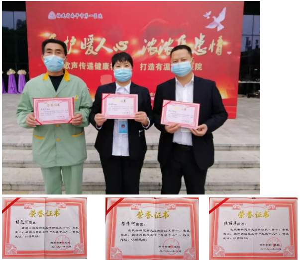 2021-03-09 04:03:01近日,朗洁南平市第一医院项目部的三位员工杨元璟、林丽萍、陈清河获得院方颁发的抗疫工作“先进个人”的荣誉证书,这是院方对我们后勤服务工作的肯定和赞许,充分体现了朗洁“提供高效服务,确保客户满意”的服务宗旨。