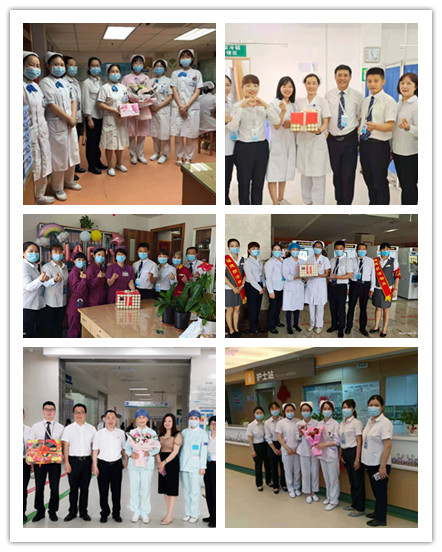 各个项目上,管理人员都亲切地将精心准备的鲜花、礼品送到护士的手中,并热情交谈。一句句“你们辛苦了,感谢你们”、“节日快乐”的话语,温暖了护士们的心,每个人脸上洋溢着幸福的笑容。定格的是合影,合影里笑着甜甜的是护士们最美的身影和朗洁最真挚的关怀。