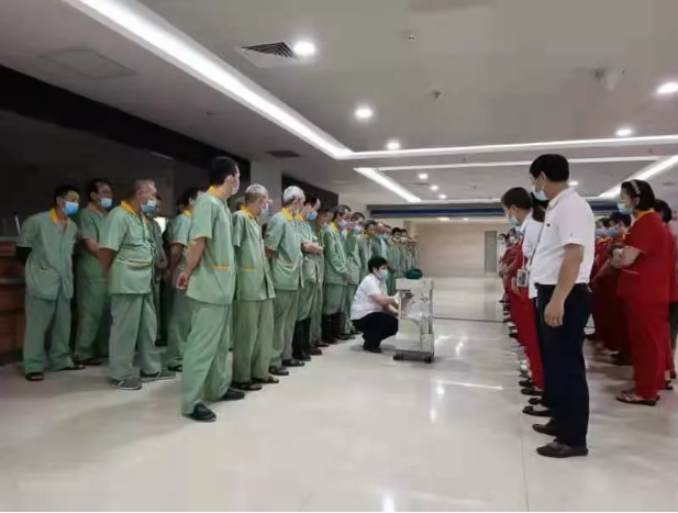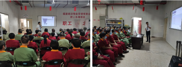 同时,南平市第一医院项目部还利用例会时间组织员工进行引流瓶如何消毒清洁及注意事项的培训,不断地强化员工的专业知识,掌握技能,提供高质量的服务。