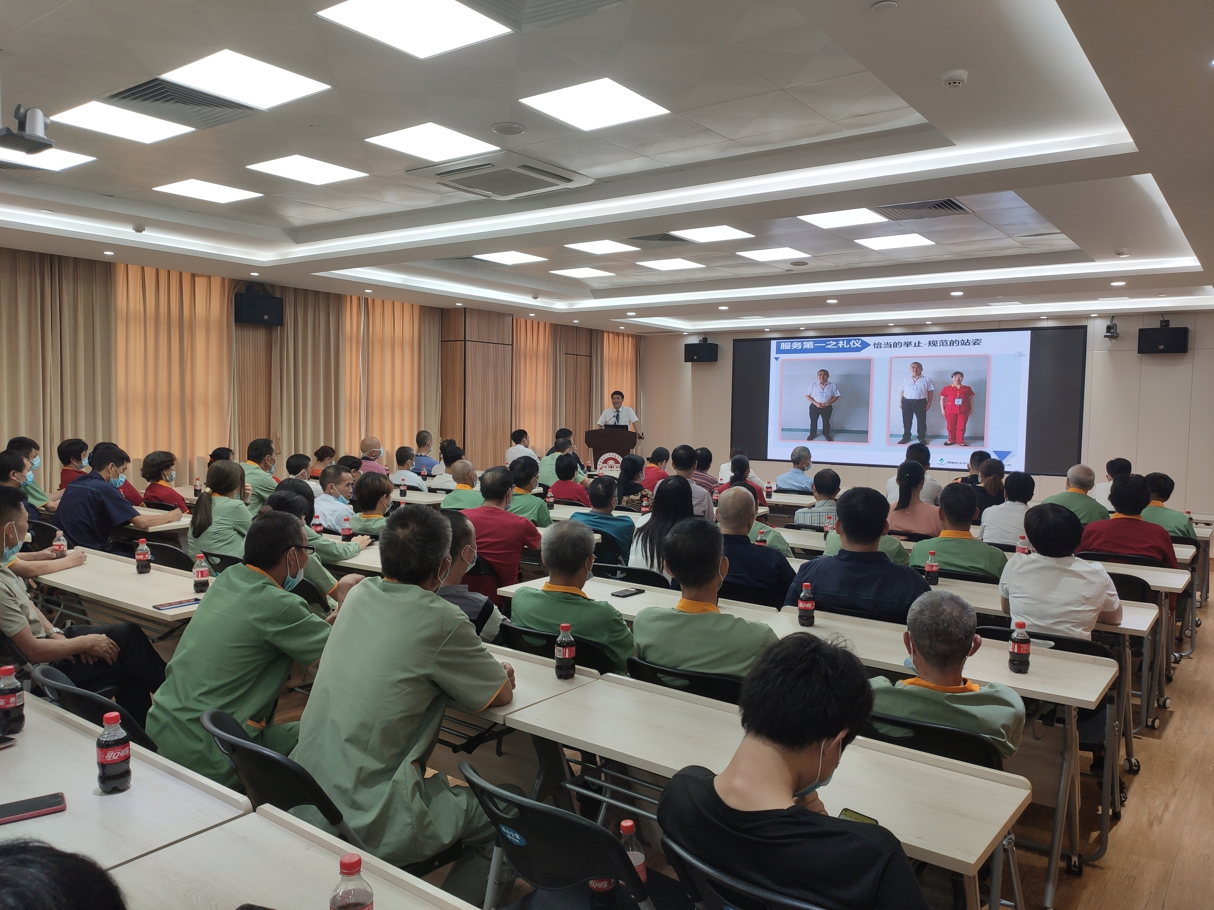 礼仪是一门艺术,是无声的语言。为提高朗洁员工的礼仪修养,提高服务品质,塑造朗洁良好服务形象,朗洁福建医科大学附属第二医院项目部组织全体员工进行“服务第一”的礼仪培训。