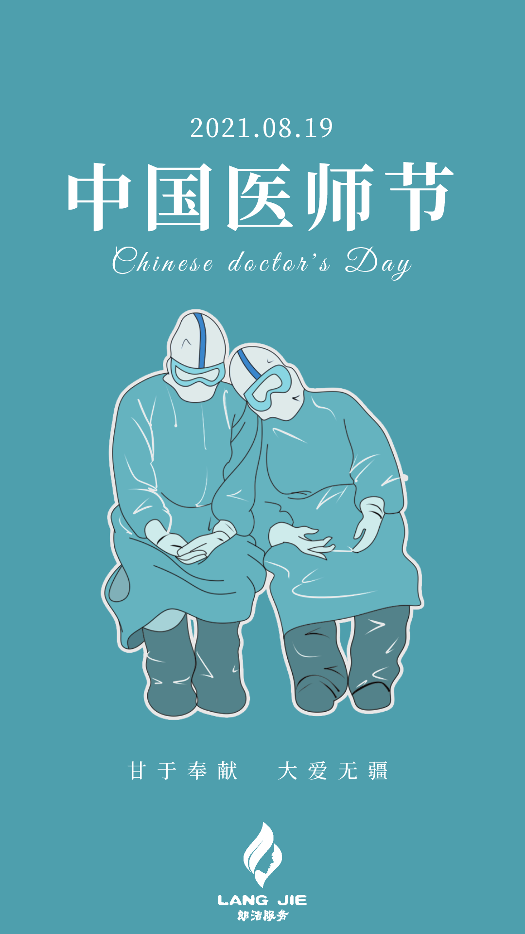 值此2021年8月19日医师节之际,朗洁物业向所有默默坚守、奉献的医生致敬!节日快乐!你们辛苦了!这个时代,有你们真好!愿山河无恙,世事如初!白衣精神,薪火相传!