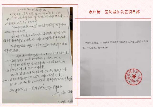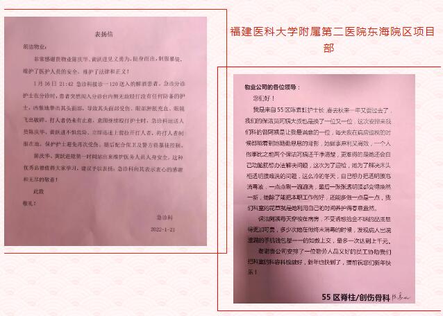 寒冬收暖信,心情倍兴奋!岁末年初之际,朗洁各项目部纷纷收到一封封来自院方各科室的表扬信,满载院方的肯定和鼓励,字里行间皆是对朗洁物业工作的认可和赞扬,并表达了由衷的感谢。