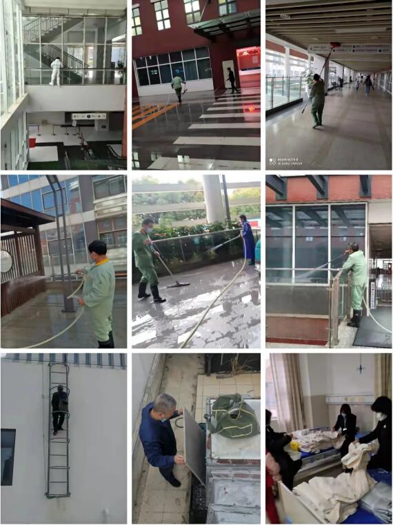 朗洁物业各项目对楼道杂物进行清理、清扫楼道、地面冲洗、墙面、门窗、玻璃、灰尘清理,大厅地面处理,地下车库、管道及各个死角杂物清理,楼栋四周绿化带垃圾清理以及检查各楼道消防设施设备完好情况等,都进行了定人、定责、定标准和定时间。大家充分发挥不怕苦、不怕累的精神,不落下一个卫生死角,不放过一张纸屑、一个烟头,每个人都尽心尽力完成好自己的区域,为医院带来焕然一新的感觉。