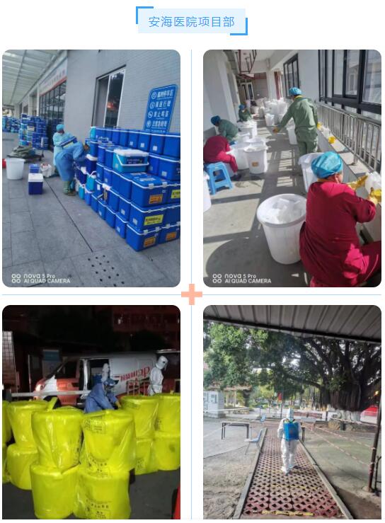 院内外高频次消杀、隔离病房的支援工作、连夜协调配送战疫物资、新隔离收治点的后勤保障开荒工作、核酸采样送检等等工作全都在朗洁物业团队高效保障下井然有序的进行着,在这个非常时期,他们异常清楚病毒的危害性,但毅然选择加入,与医护人员融为一体,齐心协力、日以继夜的奋战在后勤保障工作的一线。